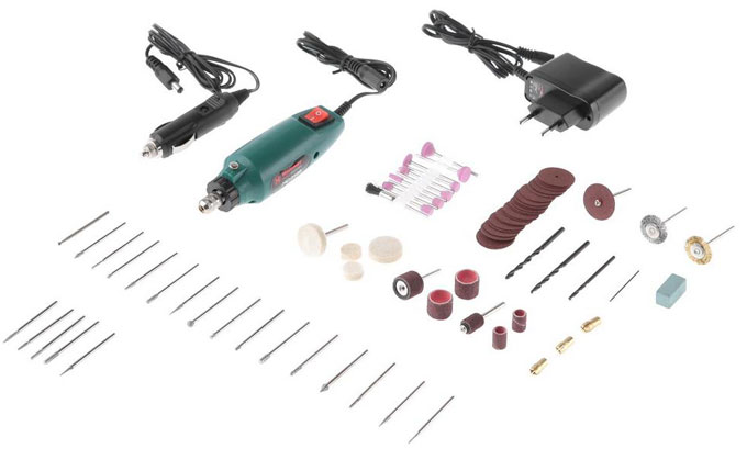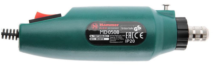 HAMMER MD050B – самая простая мини-дрель в линейке. Поставляется с набором насадок для резки, шлифовки, полировки, сверления, заточки и других работ. Всего в комплекте 80 предметов. Подходит только для периодического домашнего использования.