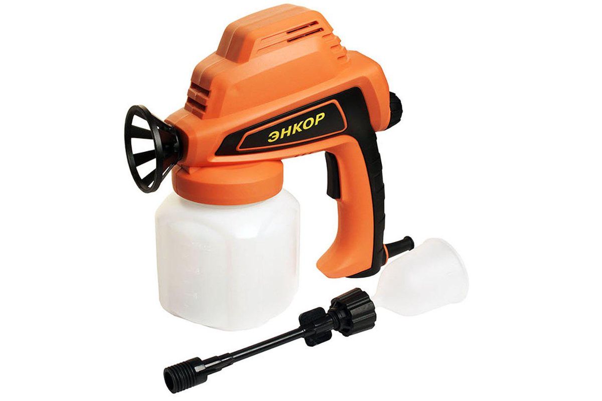 ЭНКОР КЭ-100 50335 – электрический безвоздушный распылитель. Мощность 100 Вт. Сопло 0,8 мм. Бак с нижним расположением, объём 0,7 л. Пригодится для нанесения водорастворимых красок, грунтовок, лаков, морилок и т.д.