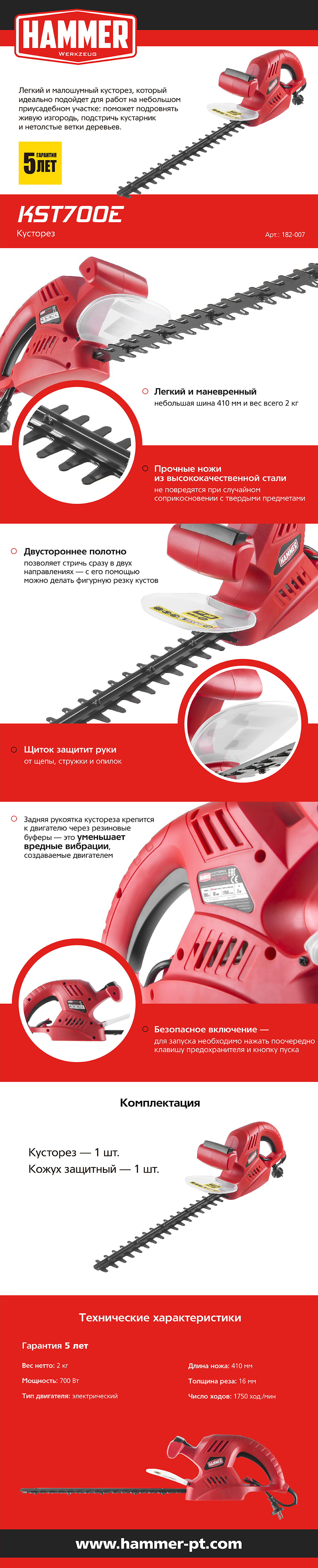Легкий и малошумный кусторез, который идеально подойдет для работ на нeбoльшoм пpиуcaдeбнoм учacтке: поможет подровнять живую изгородь, подстричь кустарник и нетолстые ветки деревьев.