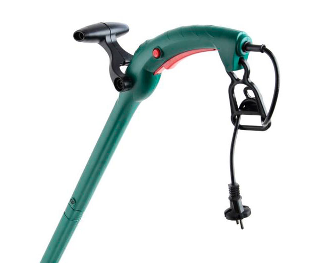 Электротриммер Hammer Flex ETR300 мощностью 350 Вт – простой инструмент для ухода за газоном на дачном участке. За один проход он обрабатывает полосу шириной 20 см. Отличительная черта модели — небольшой вес, всего 2 кг.