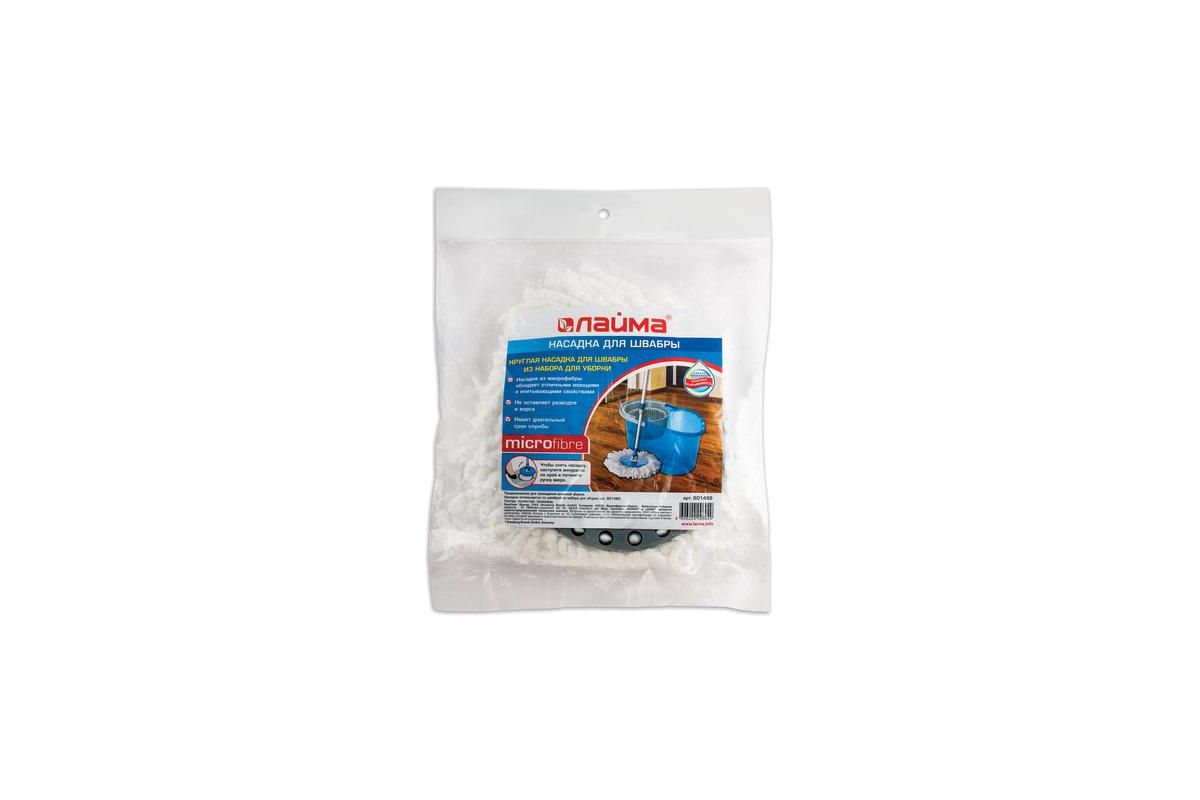 Изготовлена из микрофибры, крепится к держателю швабры с помощью резиновой полоски на обратной стороне.