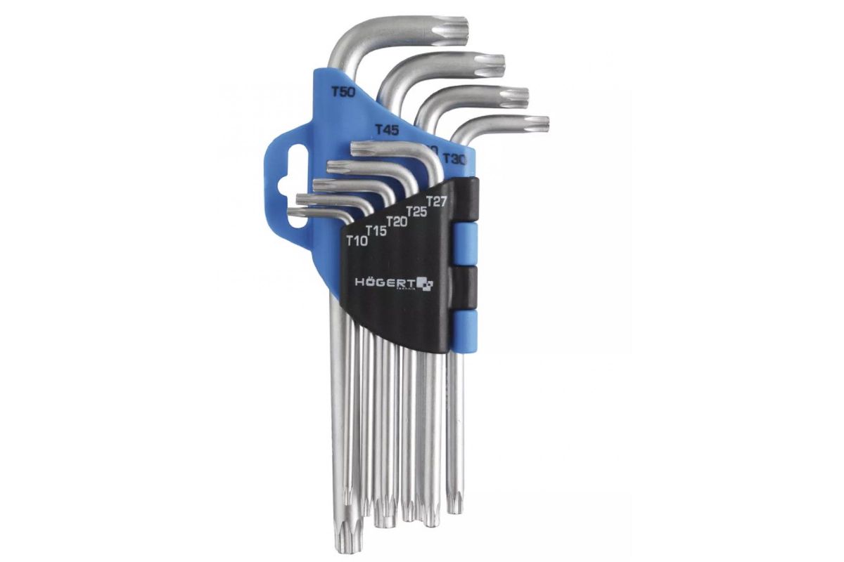 Набор универсальных ключей TORX размером от Т10 до T50, из высококачественной хромванадиевой стали.